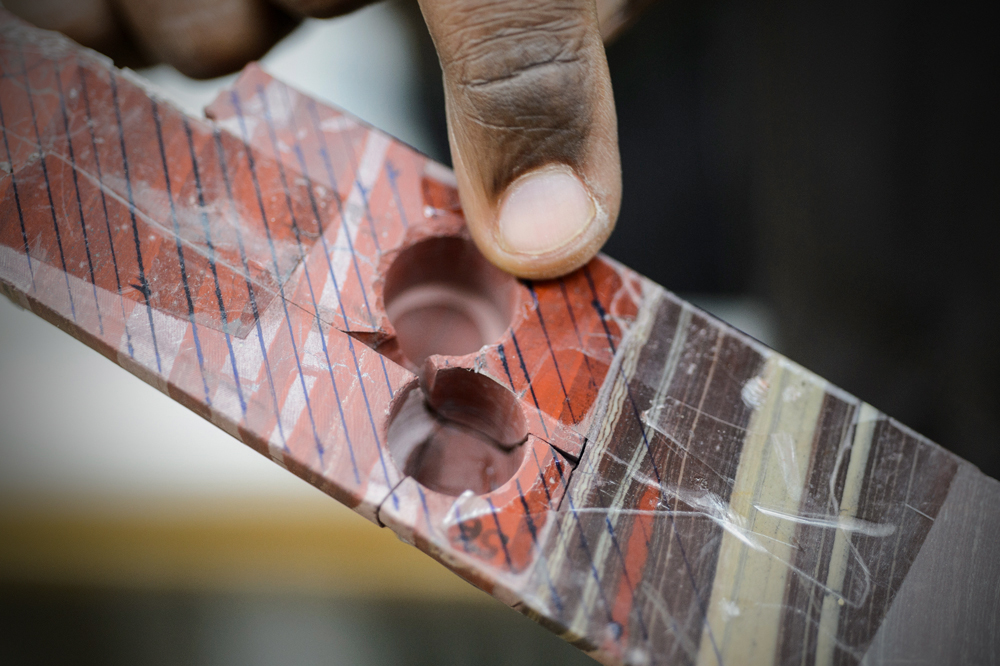 Wabo made great progress, spending most of the winter of 2013 examining the striated greens, pinks, reds, purples and grays that characterize the rock. Each pigmented band represents a sediment layer originally laid down on the bed of an ancient sea, the colors a display of the minerals trapped within layers as they formed.