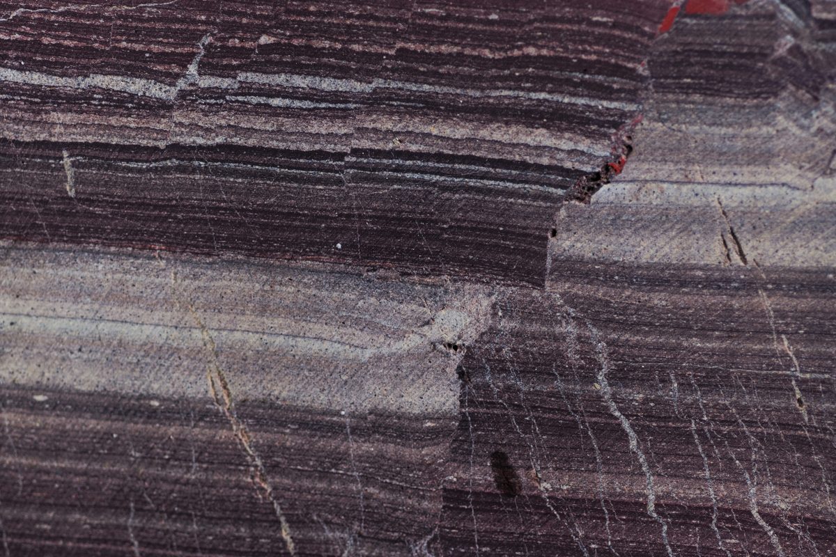 Wabo made great progress, spending most of the winter of 2013 examining the striated greens, pinks, reds, purples and grays that characterize the rock. Each pigmented band represents a sediment layer originally laid down on the bed of an ancient sea, the colors a display of the minerals trapped within layers as they formed.